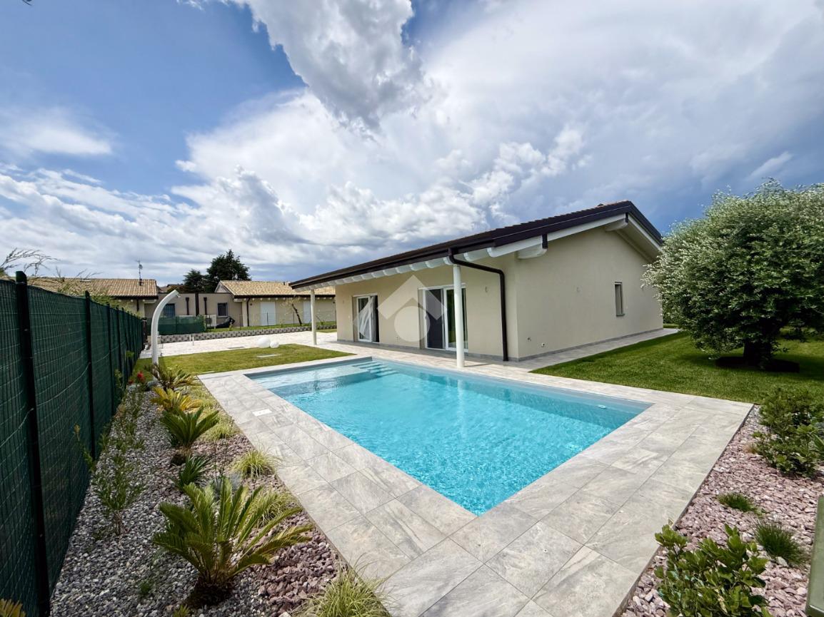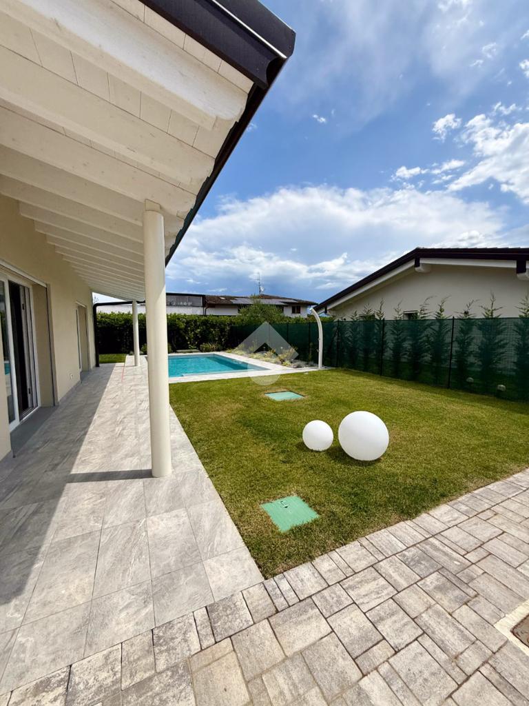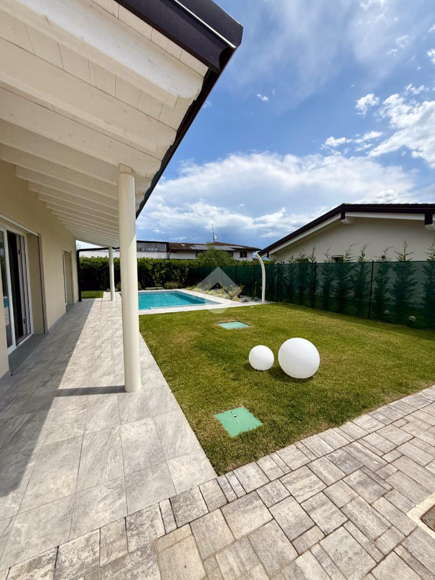 In una posizione esclusiva, a meno di un chilometro dalle acque cristalline del Lago di Garda, sorge questa prestigiosa villa singola di nuova costruzione, pensata per chi desidera vivere il lusso in armonia con la natura.