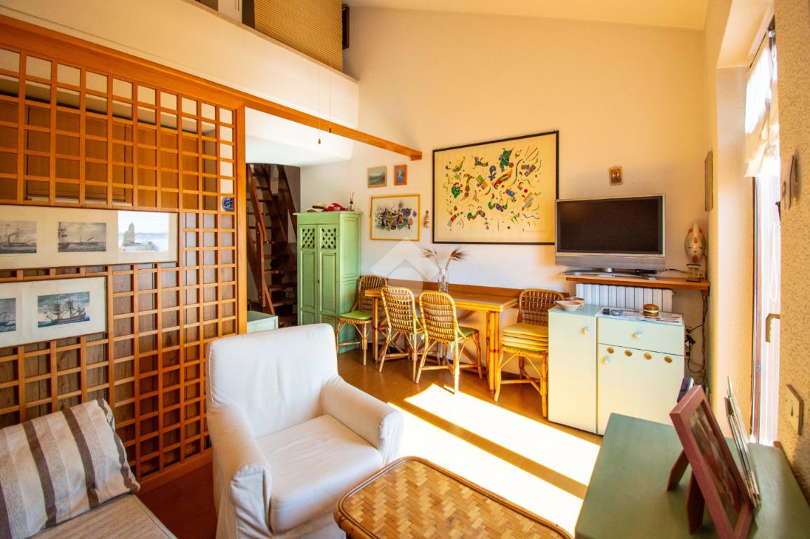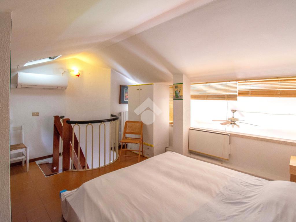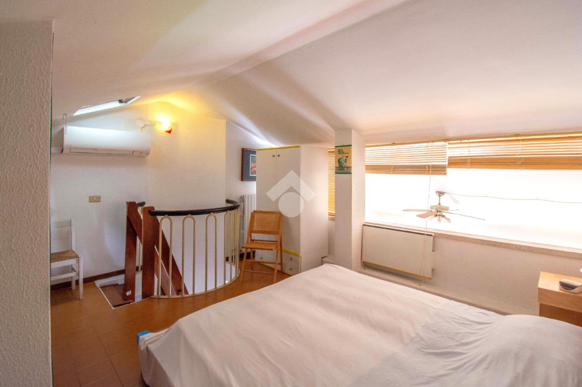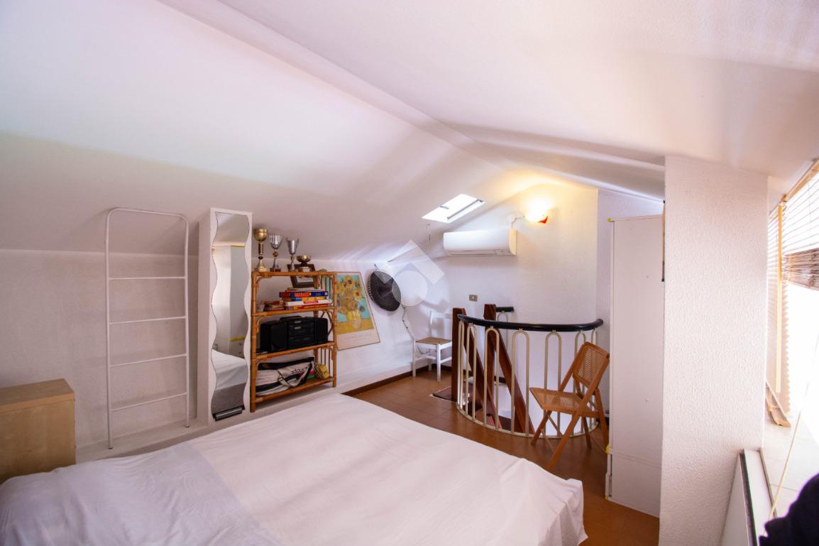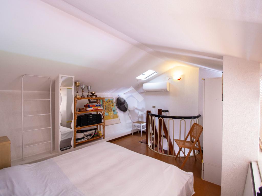 Dalla scala interna nel disimpegno si accede al soppalco, organizzato con un letto matrimoniale, che offre ulteriore spazio e funzionalità.