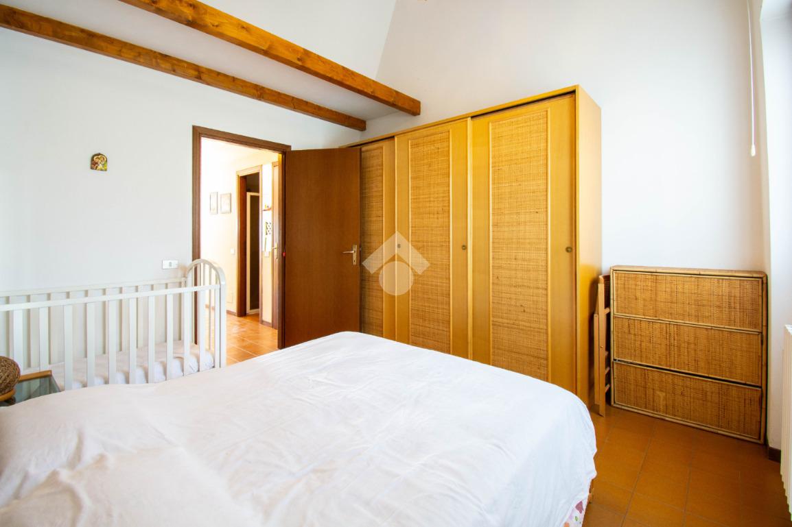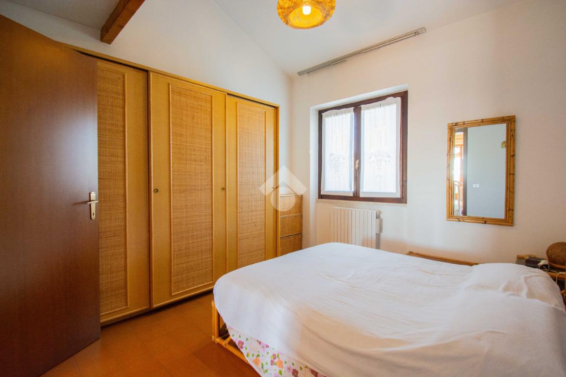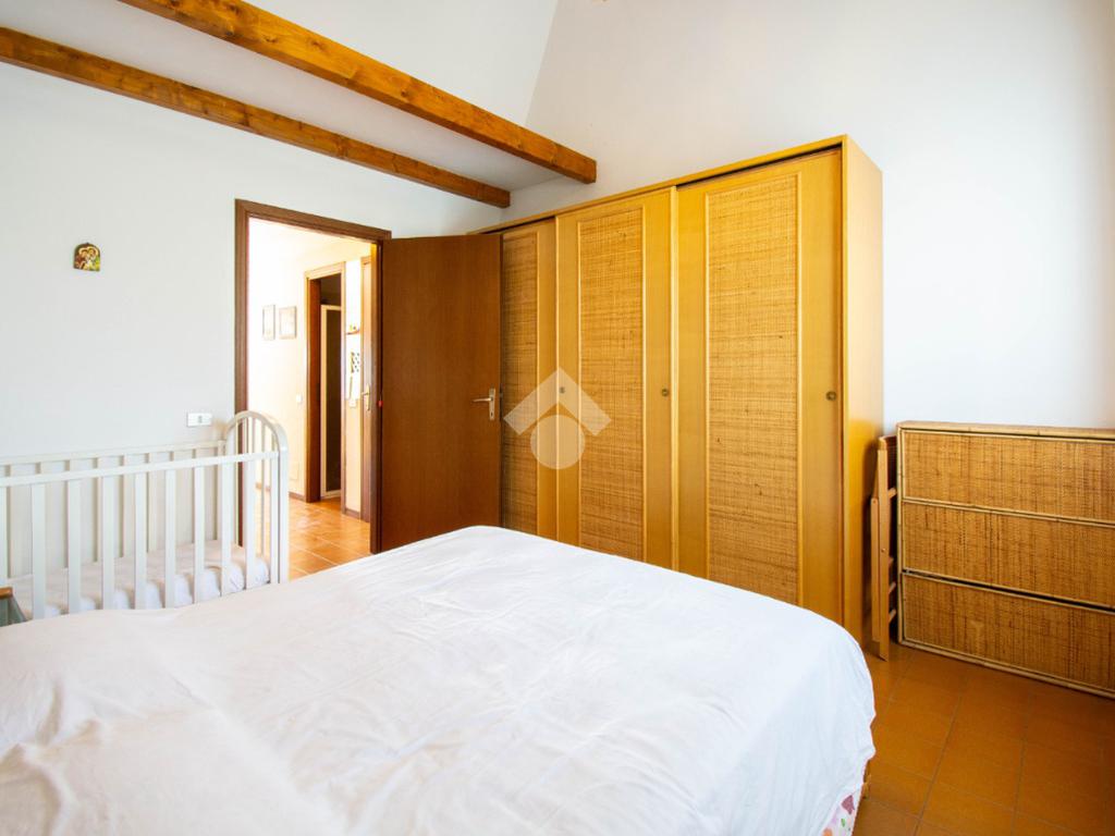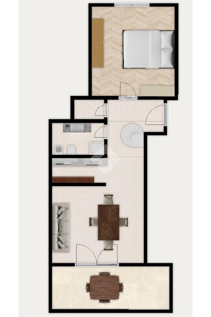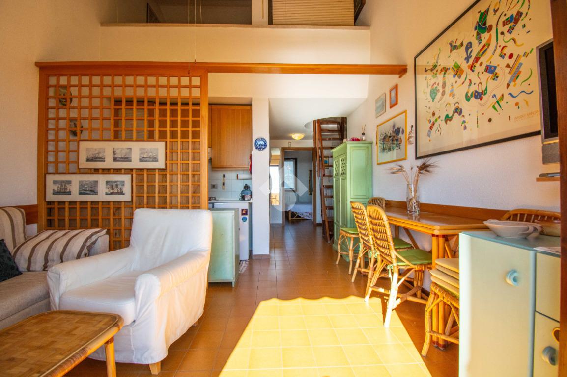 Dalla scala interna nel disimpegno si accede al soppalco, organizzato con un letto matrimoniale, che offre ulteriore spazio e funzionalità.