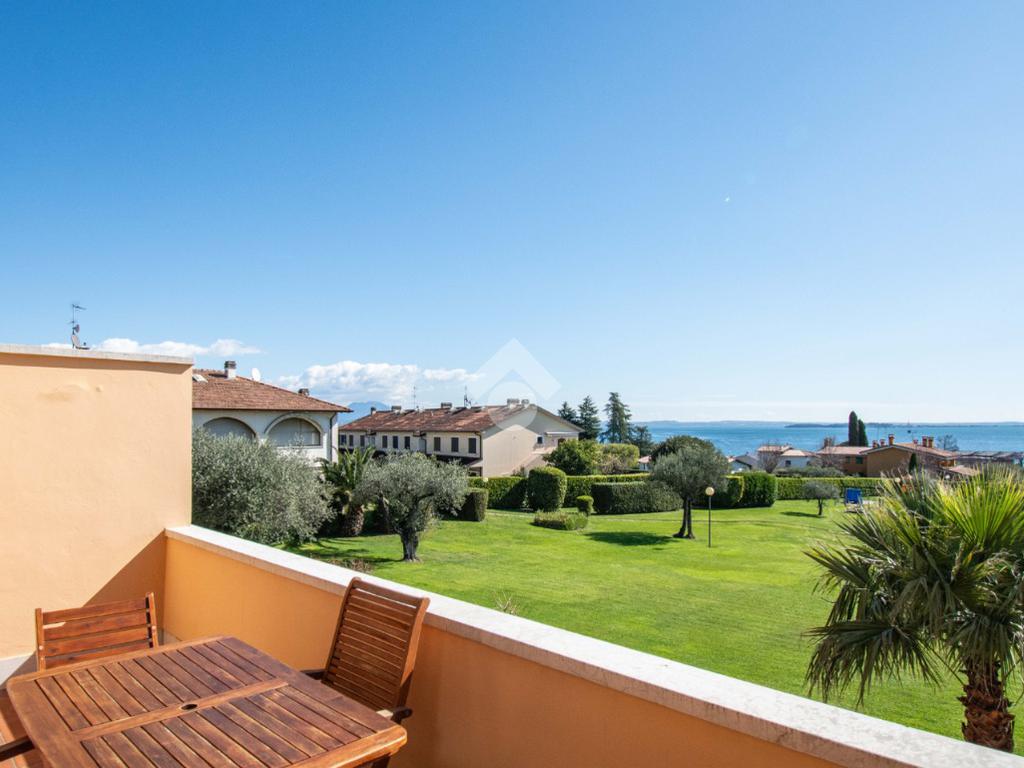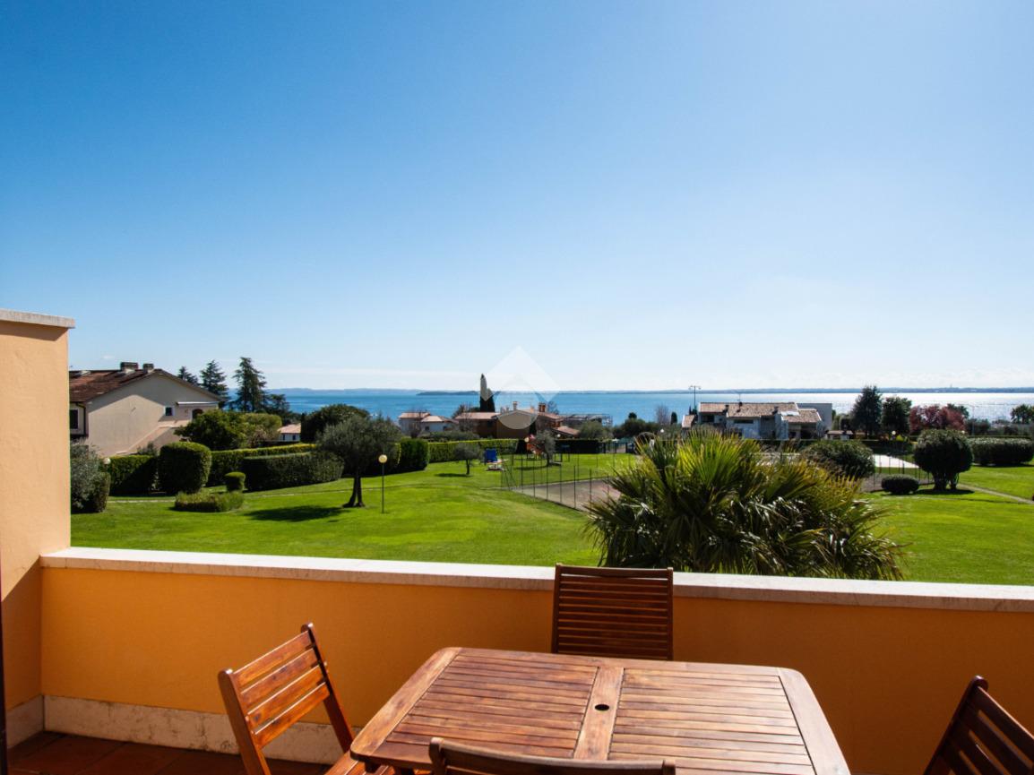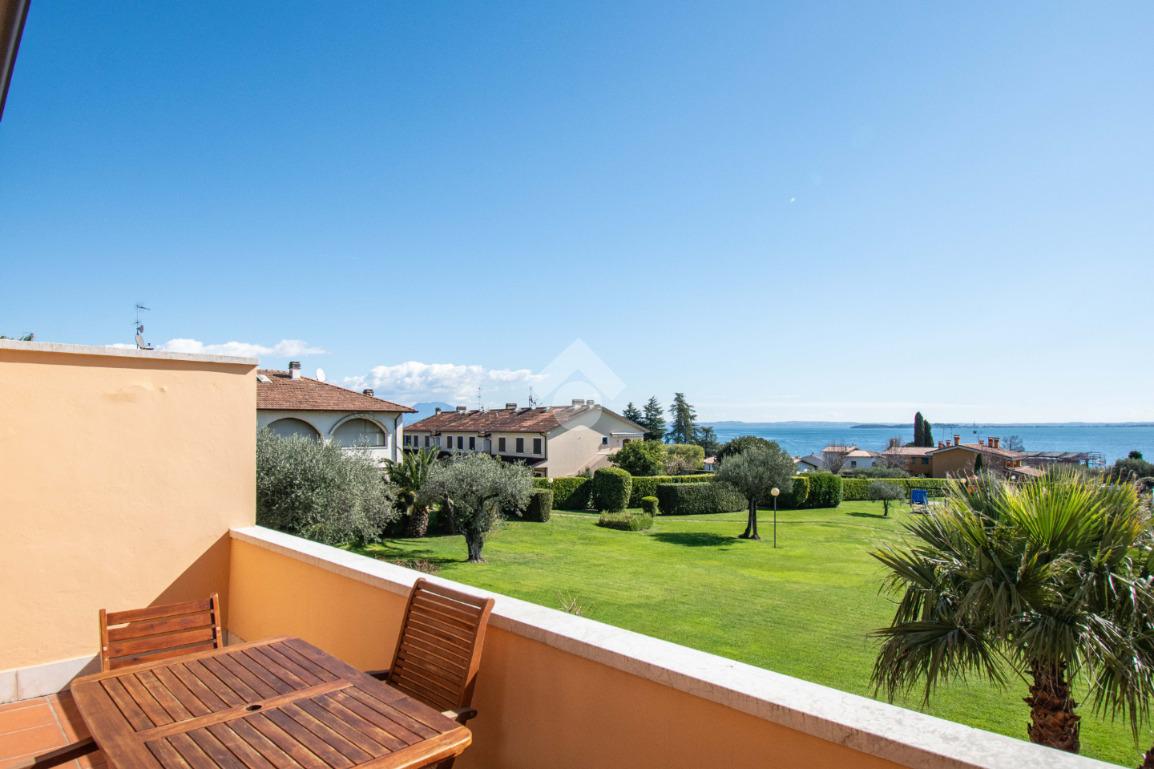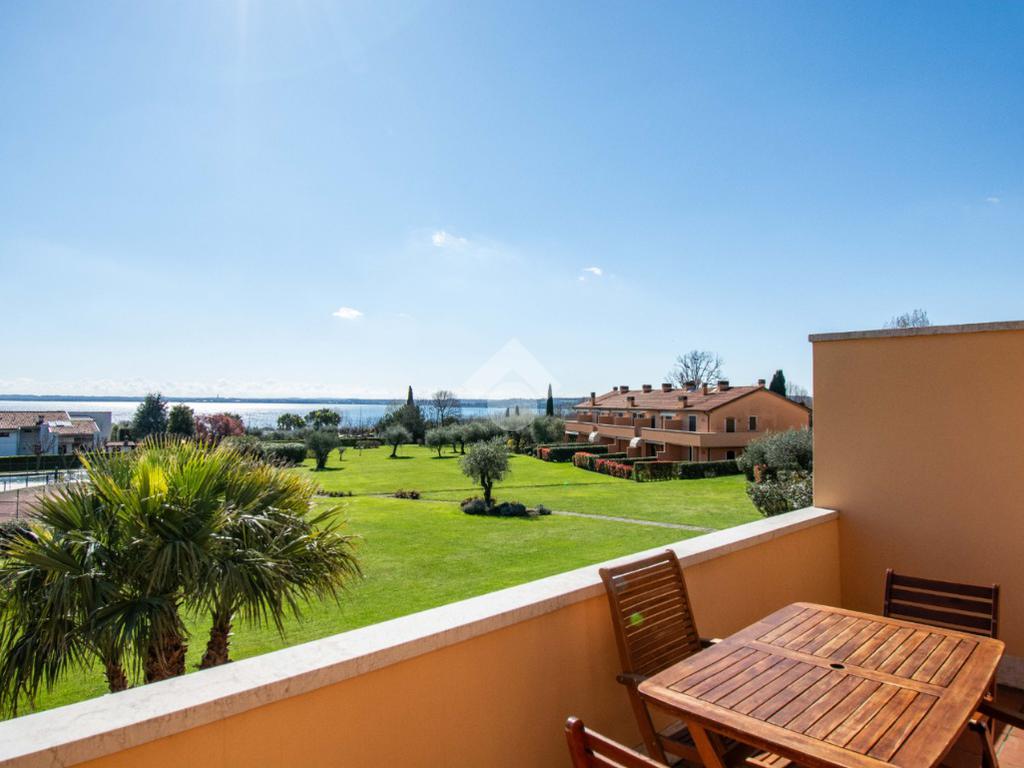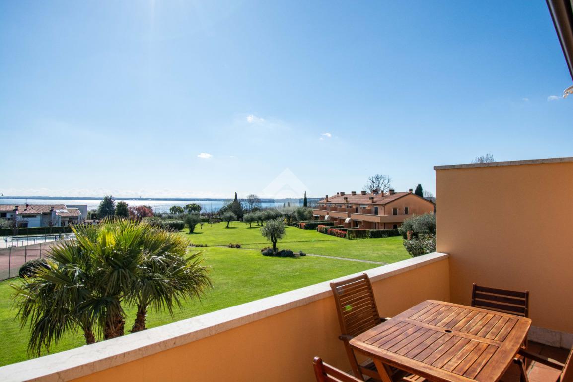 MONIGA - A pochi passi dal porto di Moniga, all’interno di un elegante residence immerso nel verde e dotato di ampi spazi comuni, proponiamo in vendita un luminoso bilocale con soppalco e splendida vista lago.