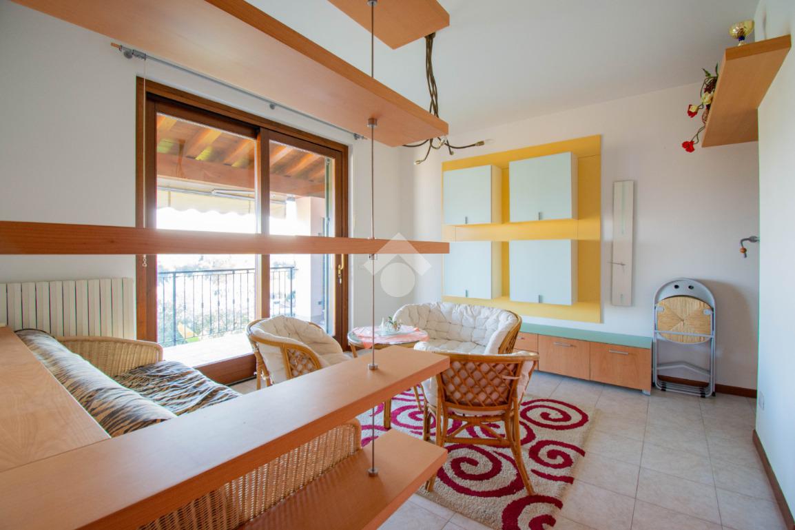 The apartment, free on three sides, enjoys excellent exposure that ensures brightness and privacy. Upon entering, you are welcomed into the living area with an open-plan kitchen — cozy and functional — opening onto a large panoramic terrace with beautiful views of the lake and surrounding hills.