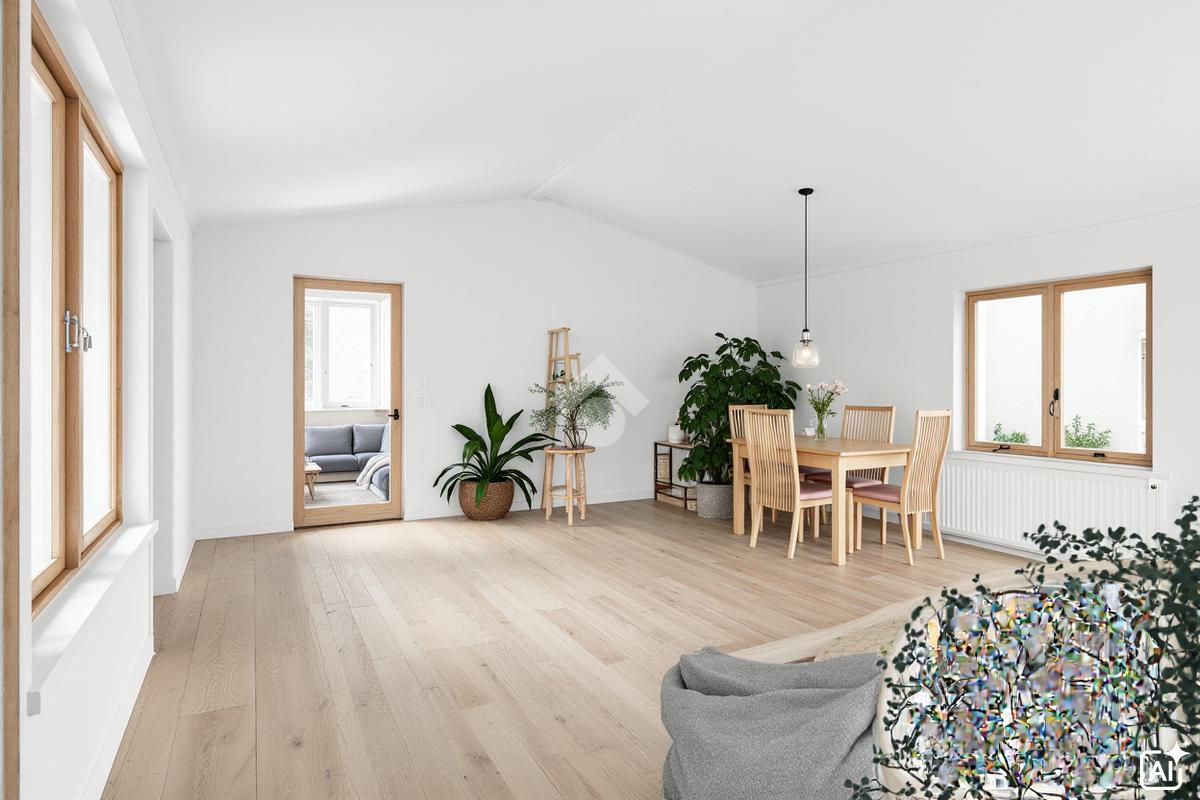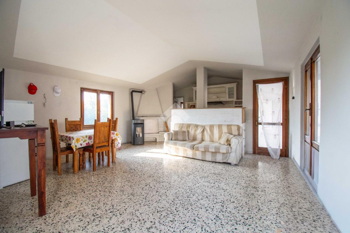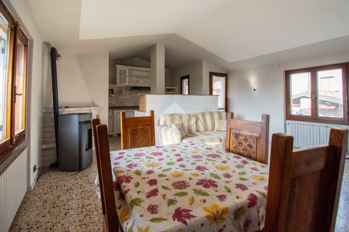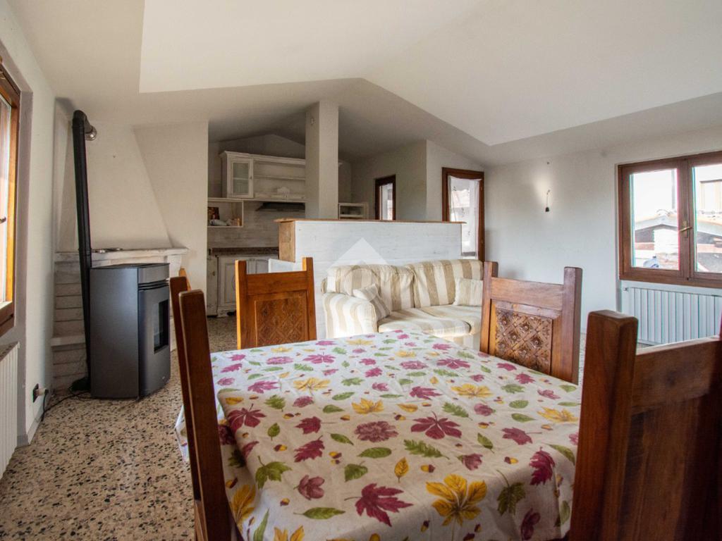 La zona giorno, luminosissima e accogliente, è impreziosita da un camino e da una cucina in stile classico. Dal corridoio si accede alla zona notte, composta da due camere da letto e dal bagno finestrato.