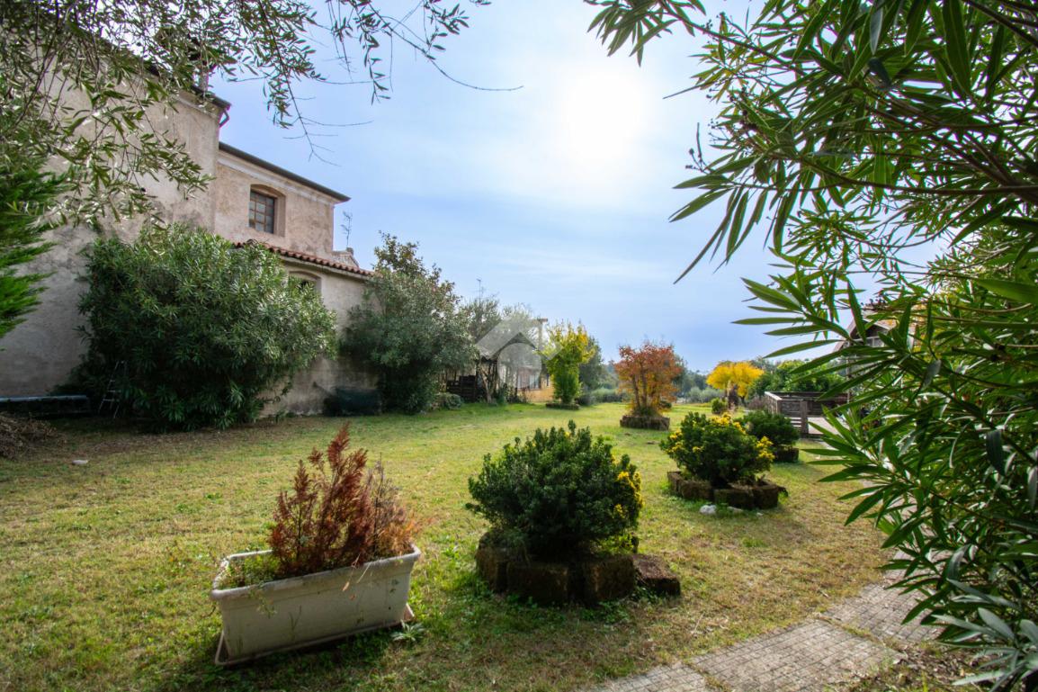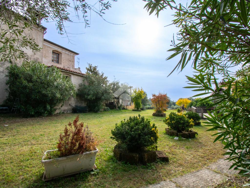L’ingresso alla proprietà si apre su un ampio parco privato, con accesso carraio e una piacevole vista panoramica sul verde circostante.
