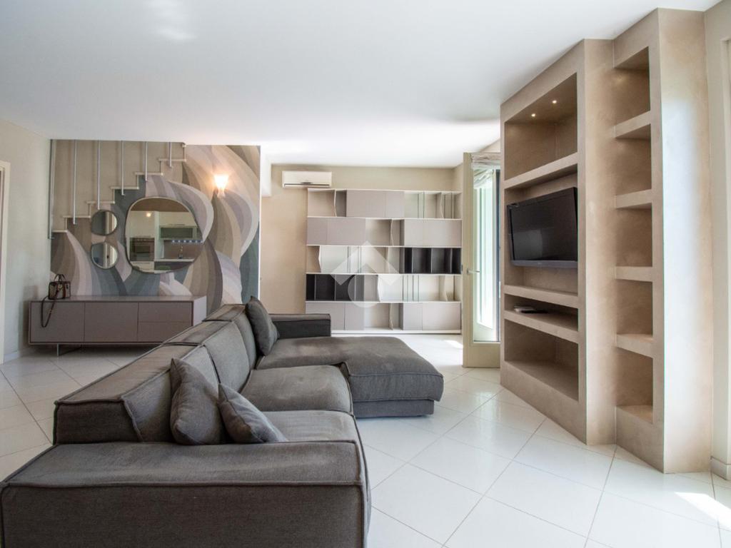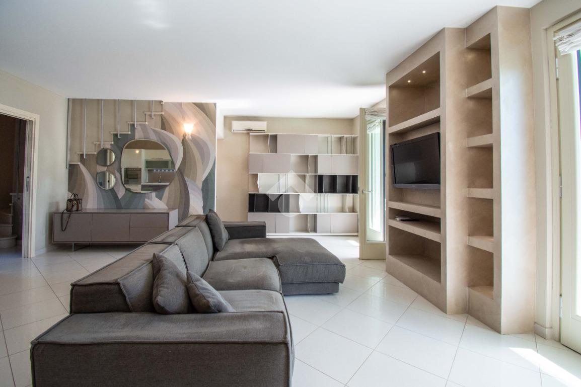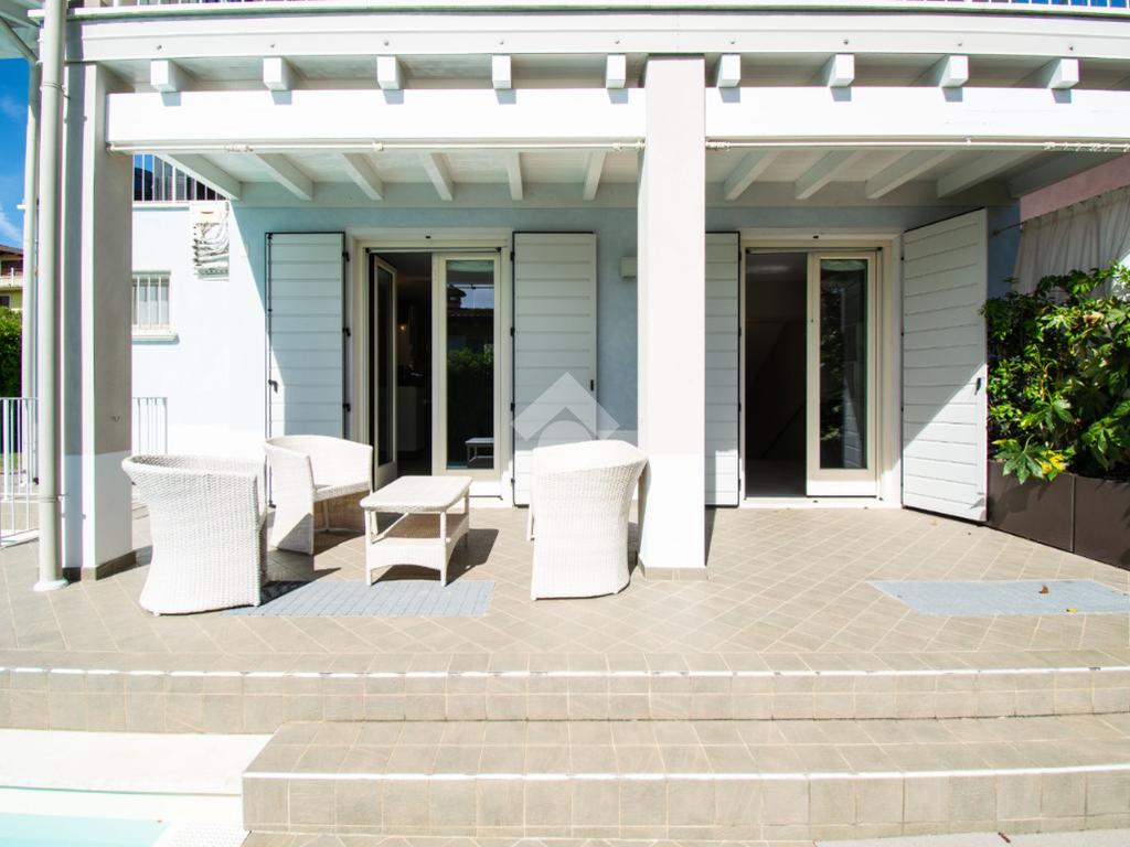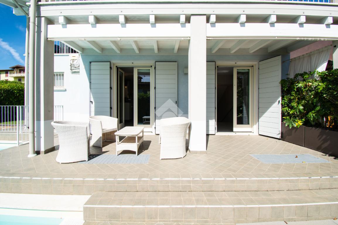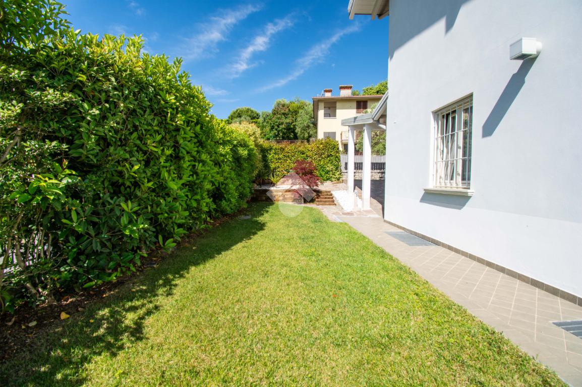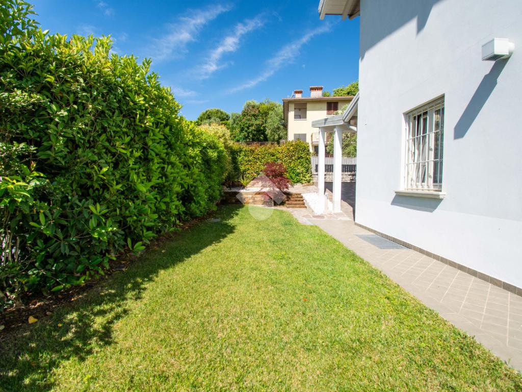 Gli spazi esterni rappresentano un autentico elemento distintivo: il giardino privato, curato e riservato, accoglie una splendida piscina con zona solarium, ideale per momenti di relax in totale privacy. Il portico vivibile, elegante e funzionale, crea una naturale continuità tra interno ed esterno, perfetto per pranzi e cene all’aperto in ogni stagione.