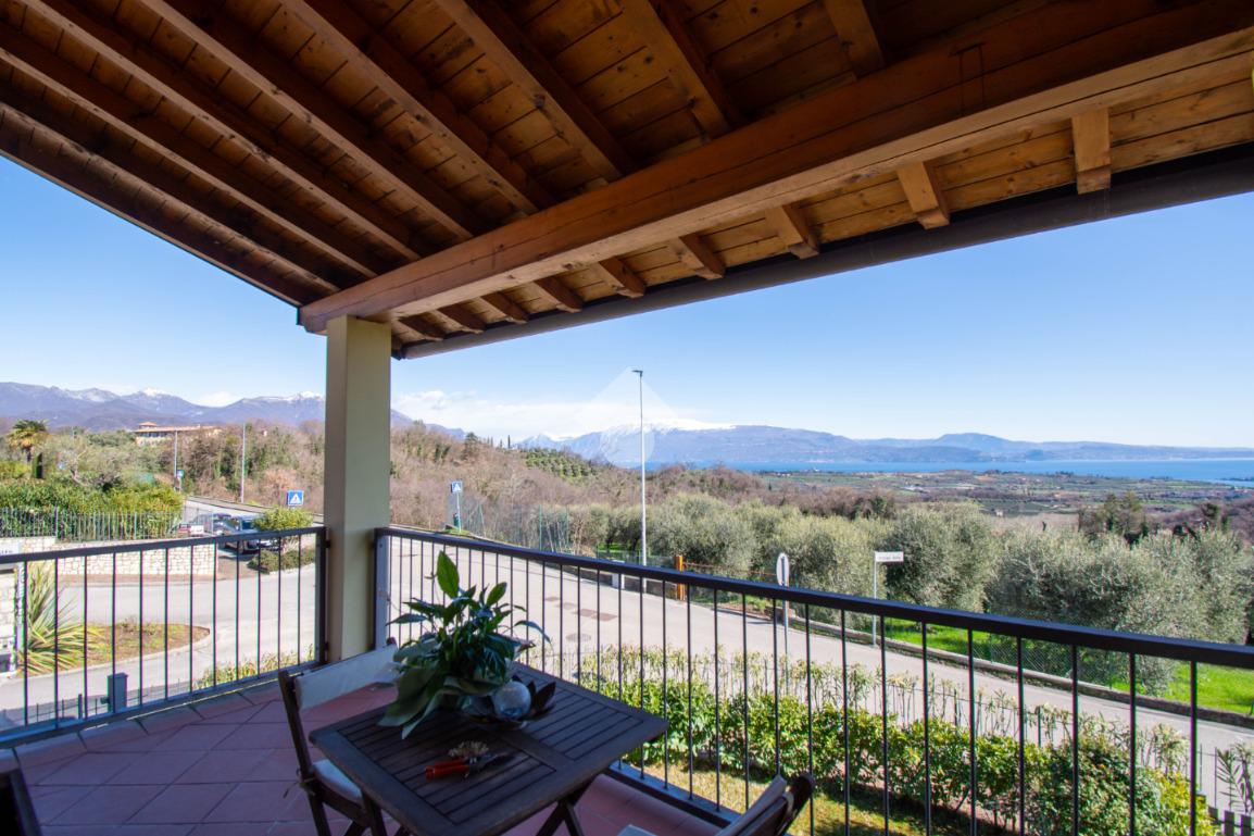 PUEGNAGO - Nel cuore delle colline moreniche, all’interno di un elegante residence immerso nel verde con piscine e curati spazi comuni, proponiamo in vendita un ampio bilocale di testa con mansarda e terrazzo panoramico con vista totale sul Lago di Garda.