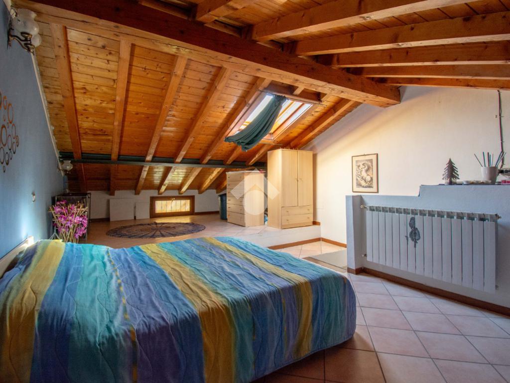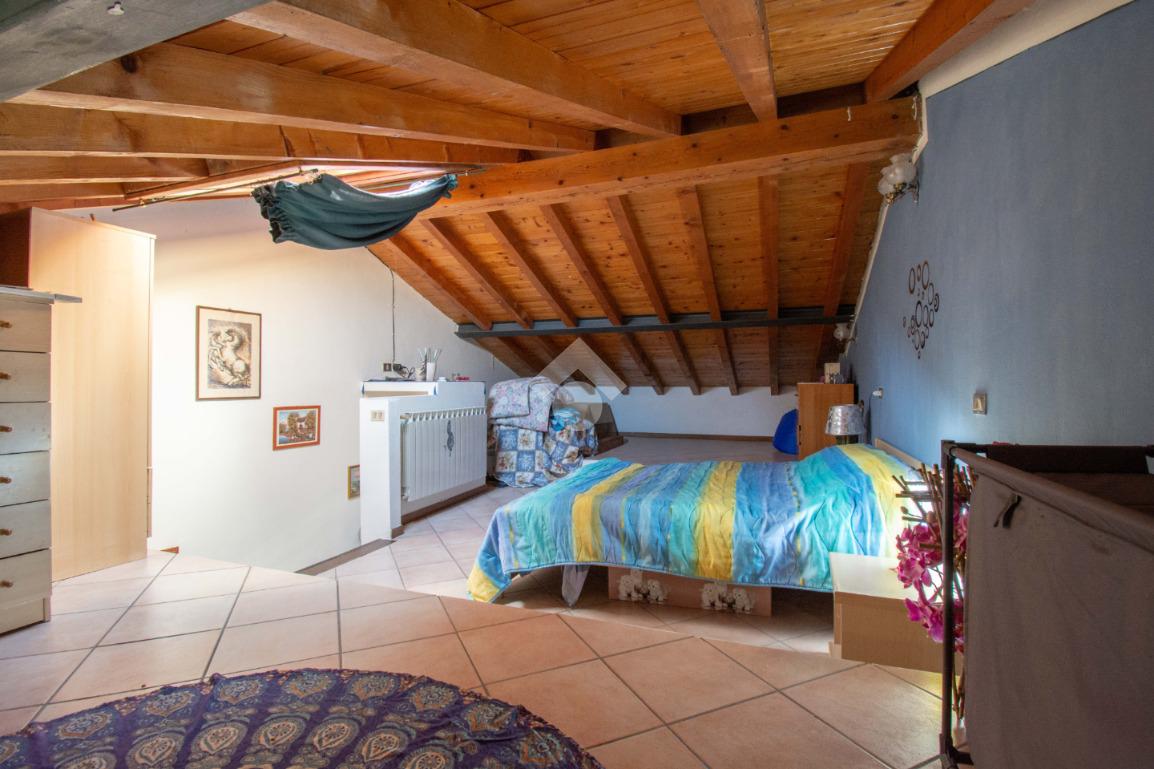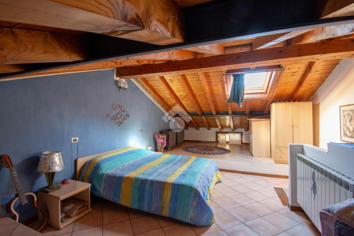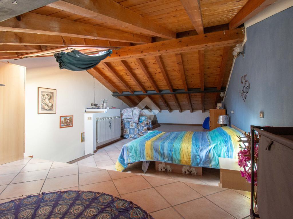 Al piano superiore, la spaziosa mansarda con travi a vista rappresenta un ambiente versatile, ideale come seconda ampia camera matrimoniale o locale accessorio.