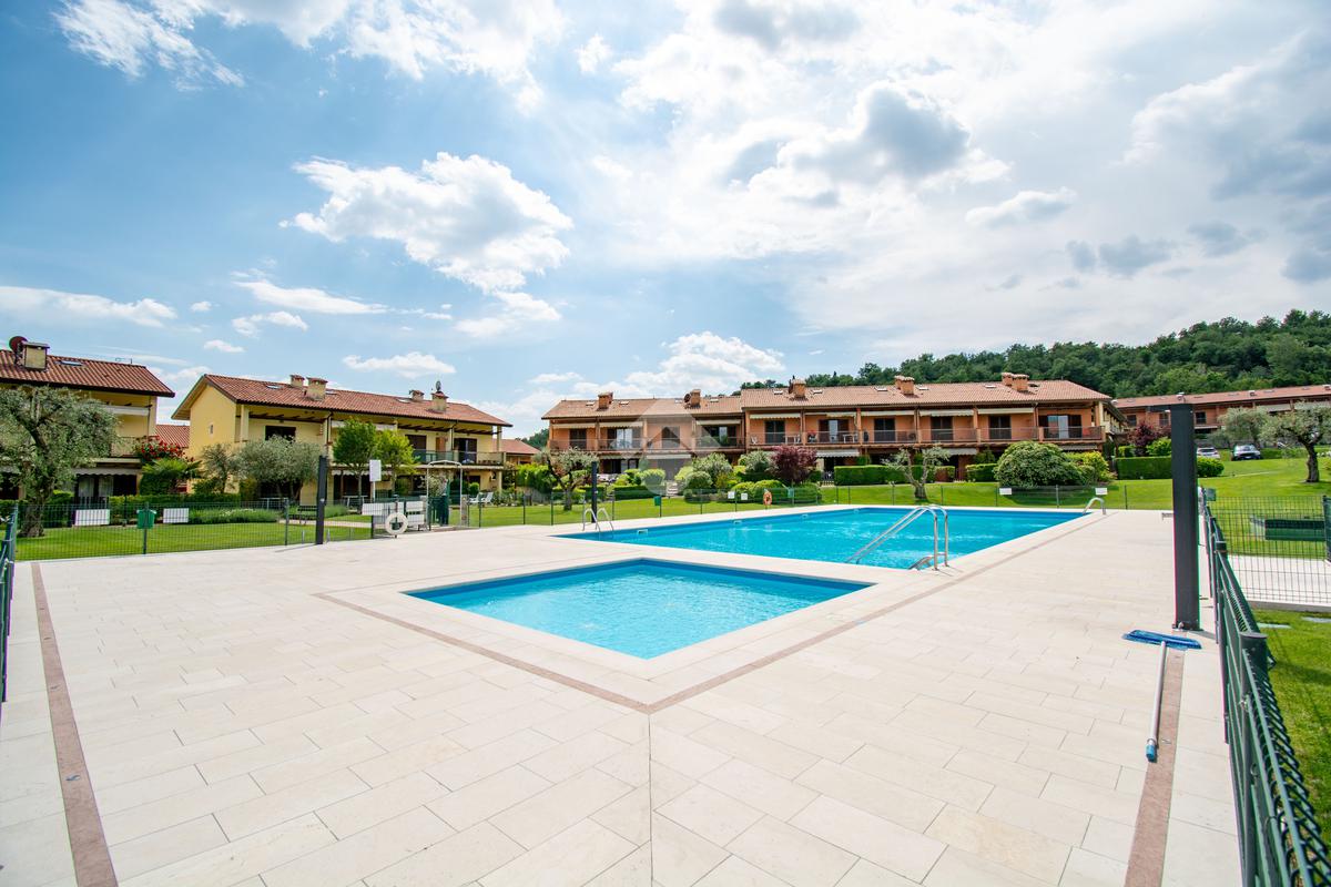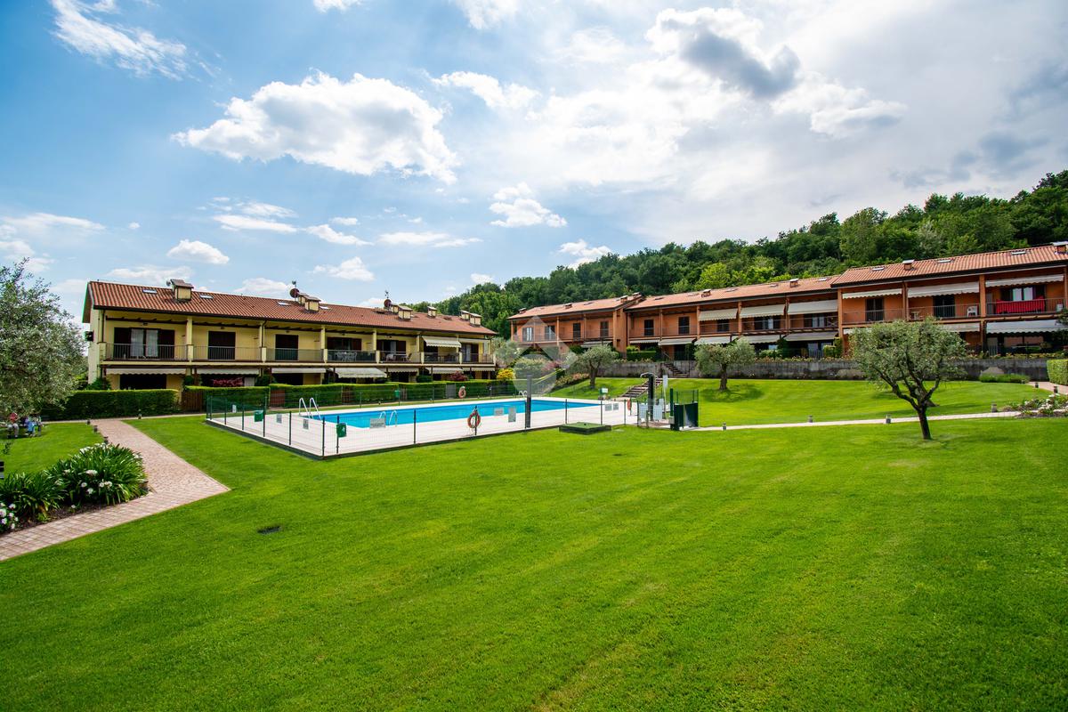 EN: In Puegnago del Garda, in the heart of the moraine hills, within an elegant residence surrounded by greenery with swimming pools and well-maintained common areas, we offer for sale a spacious end-unit one-bedroom apartment with attic and panoramic terrace boasting a full view of Lake Garda.